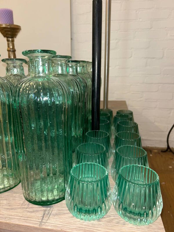 - Smaragd groen - Beschikbare vazen: 12 stuks- Beschikbare theelichten: 12 stuks Set van 12 vazen + 12 theelichten = 75 euro